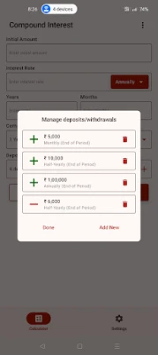 Our app helps you compute compound interest, EMI (equated monthly installment), and investment returns in just a few taps. Built for individuals, students, and finance professionals, this calculator supports multiple compounding methods including daily, monthly, quarterly, half-yearly, and yearly compounding – giving you clear insights into your financial growth.
