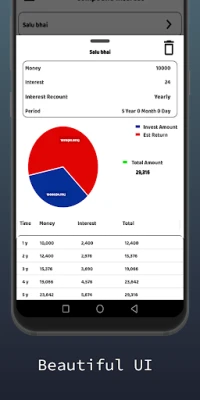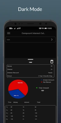 Easy to use. • 100% Trusted • Save Your Data • Share Your Calculate Data • Calculate future value of your investment using compound interest formula • Display chart & table view right under result • Calculate simple interest (non-compounding interest)