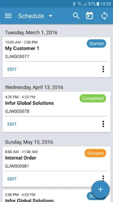 The engineer is linked to a service center and is responsible for performing service activities assigned to the designated service center. The service engineer can use this application as a virtual office remotely, to accomplish their day-to-day tasks. Examples are: the registration of labor, materials, other costs, inspection information, general hours and reporting the customer visit completed. Engineers are also able to register new calls, upload and download images and documents, lookup inventory levels, check installation information and navigate through physical breakdowns. Infor LN Mobile Service is fully integrated with Infor LN and can also be used off-line.