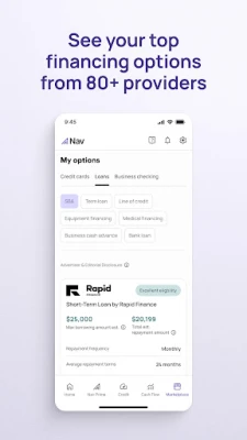 But your toolkit goes way beyond tools to help you build credit. With Nav, you can also manage your business checking and cash flow, plus explore financing options — all in one place.