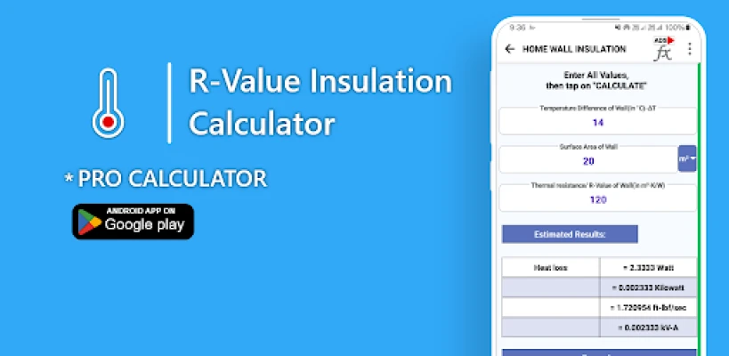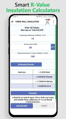 This application is intended solely for informational and educational purposes. The calculations, estimates, and data provided by the R-Value Insulation Calculator are based on standard engineering formulas and widely accepted thermal resistance principles derived from publicly available scientific literature. This app does not constitute professional advice and should not be used as a substitute for consultation with qualified engineers, contractors, or insulation professionals.